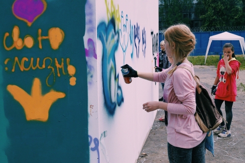На площадке фестиваля была открыта стена граффити, где каждый желающий мог оставить свой след.