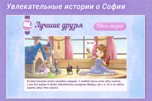 В каждом выпуске читатели найдут новые увлекательные истории о Софии, которые перенесут их в мир волшебства и удивительных приключений. Вы узнаете о таинственном волшебном амулете Авалона. Познакомитесь с придворным чародеем Седриком и побываете на занятиях в Королевской Академии вместе с Софией и ее друзьями.