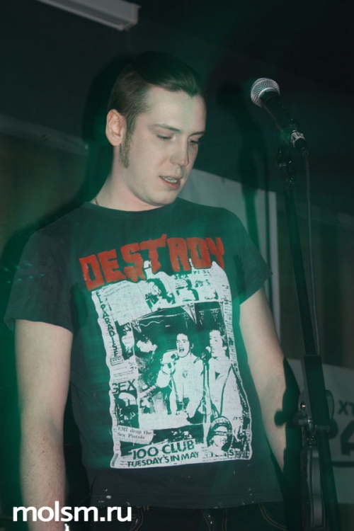 Егор, один из организаторов мероприятия, гитарист в группе «Buddy Vox», рассказывает о том, откуда есть пошла вечеринка, кто в Смоленске начал первее инди-музыкальничать: «Я помню, как в январе лежал вот тут вот (показывает на пуфики возле лестницы в паб), и барабанщик Иван был рядом. Мы увидели человека из администрации. Ваня сразу подбежал к нему, и они ушли разговаривать. Через какое-то время прибегает Иван и говорит, что в феврале мы играем в А-клубе. До этого у нас почти ничего не было, из материала — только музыка без слов».