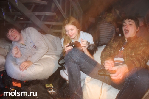 И вот под сэты ди-джеев, когда живая музыка кончилась, сидишь себе на пуфах, играешь в «Марио», и усталости и сна — ни в одном глазу. По телу разливается прямо-таки какое-то блаженство. Вот так стоит проводить вечеринки, чтобы после них у людей случалось счастье.