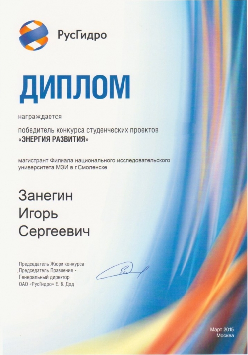 Игоря Занегина, студента второго курса магистратуры филиала МЭИ в г. Смоленске,