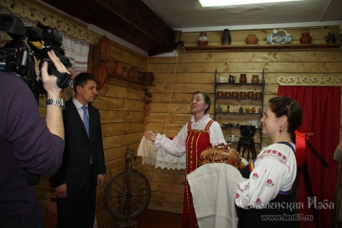 Чтобы сохранить антураж, на открытии мастерской «Смоленская Изба» гостей по традиции встретили с хлебом-солью и песнями-приветствиями. На мастер-классе все присутствующие увидели, как за 5 минут из куска глины можно слепить горшок, а желающие – даже попробовали. Заместитель Губернатора Смоленской области Алексей Гуренков первым сел за гончарный круг: