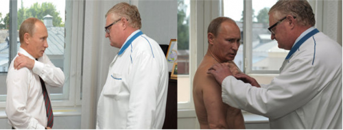 Виктор Петроченков осмотрел руку Владимира Путина, сделал ему обезболивающую аппликацию и посоветовал мазь от ушибов.