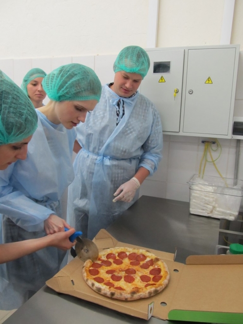 Со временем на кухне стало очень жарко: работающая печь и хорошее настроение делали свое дело. Когда последнюю пиццу отправили в духовку, группа начала нетерпеливо посматривать друг на друга — конечно, ведь всех одолевало неизмеримое желание попробовать плоды своего труда.