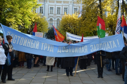 Под таким девизом прошел митинг профсоюзов в рамках Всемирного дня действий «За достойный труд!».