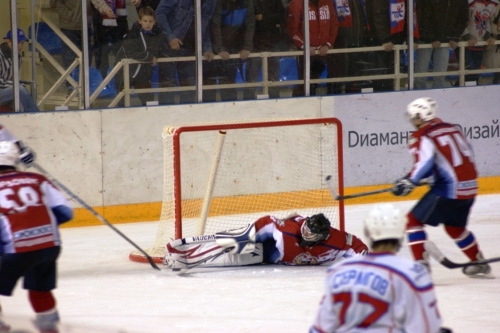На девятой минуте Алексей Алтухов вышел один на один с вратарем. Его сзади зацепил защитник. Алексей в падении случайно попал клюшкой по лицу вратарю. Болсуновский Павел с трудом, но поднялся. Мужества этому парню не занимать! Он продолжил игру и не покинул ворота! Арбитр назначил буллит. Алексей Алтухов не сумел переиграть Болсуновского. Через пару минут Павел все-таки поехал на скамейку запасных и из-за травмы не смог продолжить встречу. Вместо него ворота «Мордовии» отправился защищать Евгений Посохин.